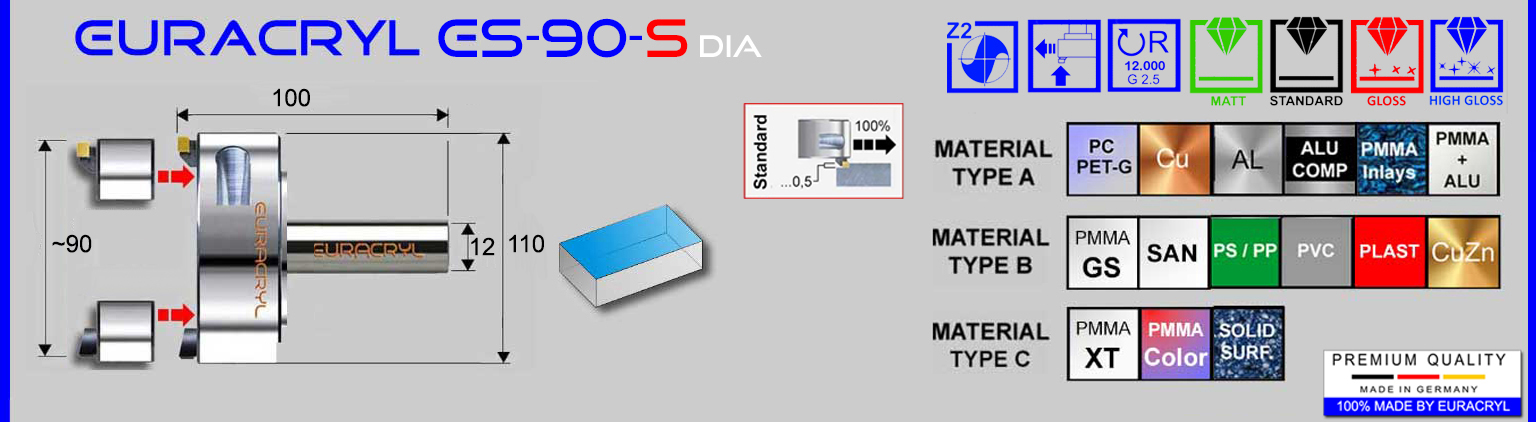 Plankopf mit mono-/polykristalliner Diamantschneide für Hochglanz/Glanz/Matt